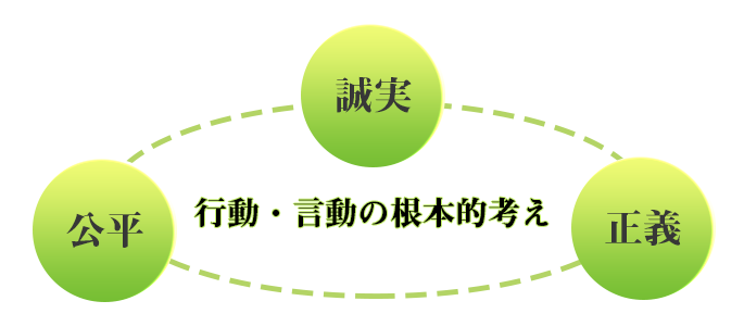 「誠実」、「正義」、「公平」を行動の規範とします。