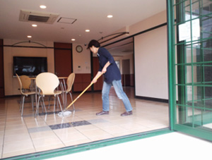 日常清掃・・・日常的に行う清掃で、掃き、拭き清掃が一般的です。